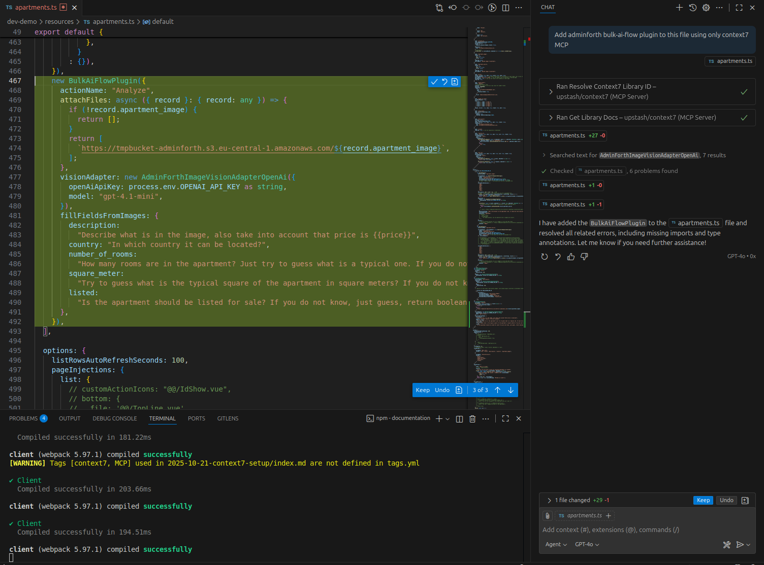 Add adminforth bulk-ai-flow plugin to this file using Context7 MCP